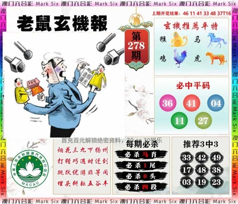 277期:天地两肖【天肖+鸡鼠】开:虎16错 |
