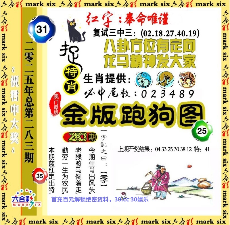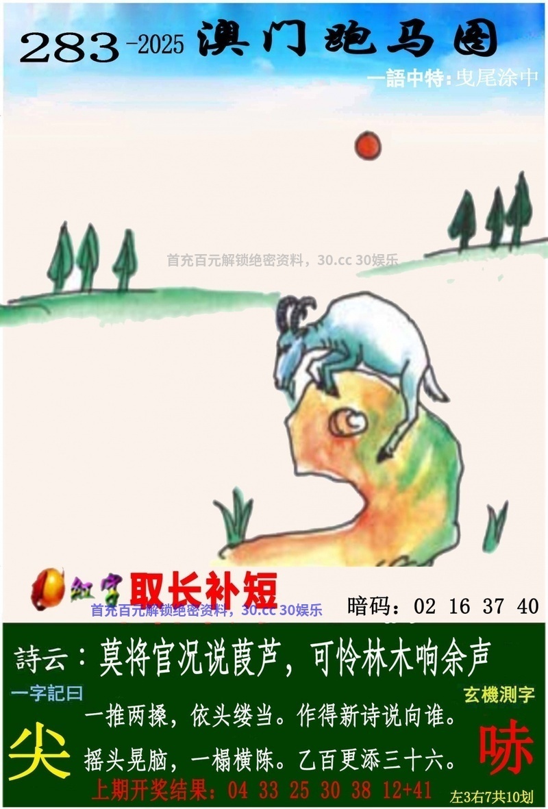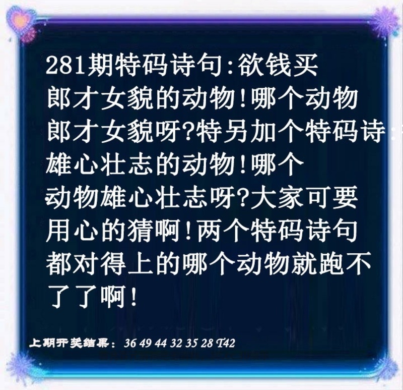 281期:天地两肖【地肖+龙马】开:羊47准 |